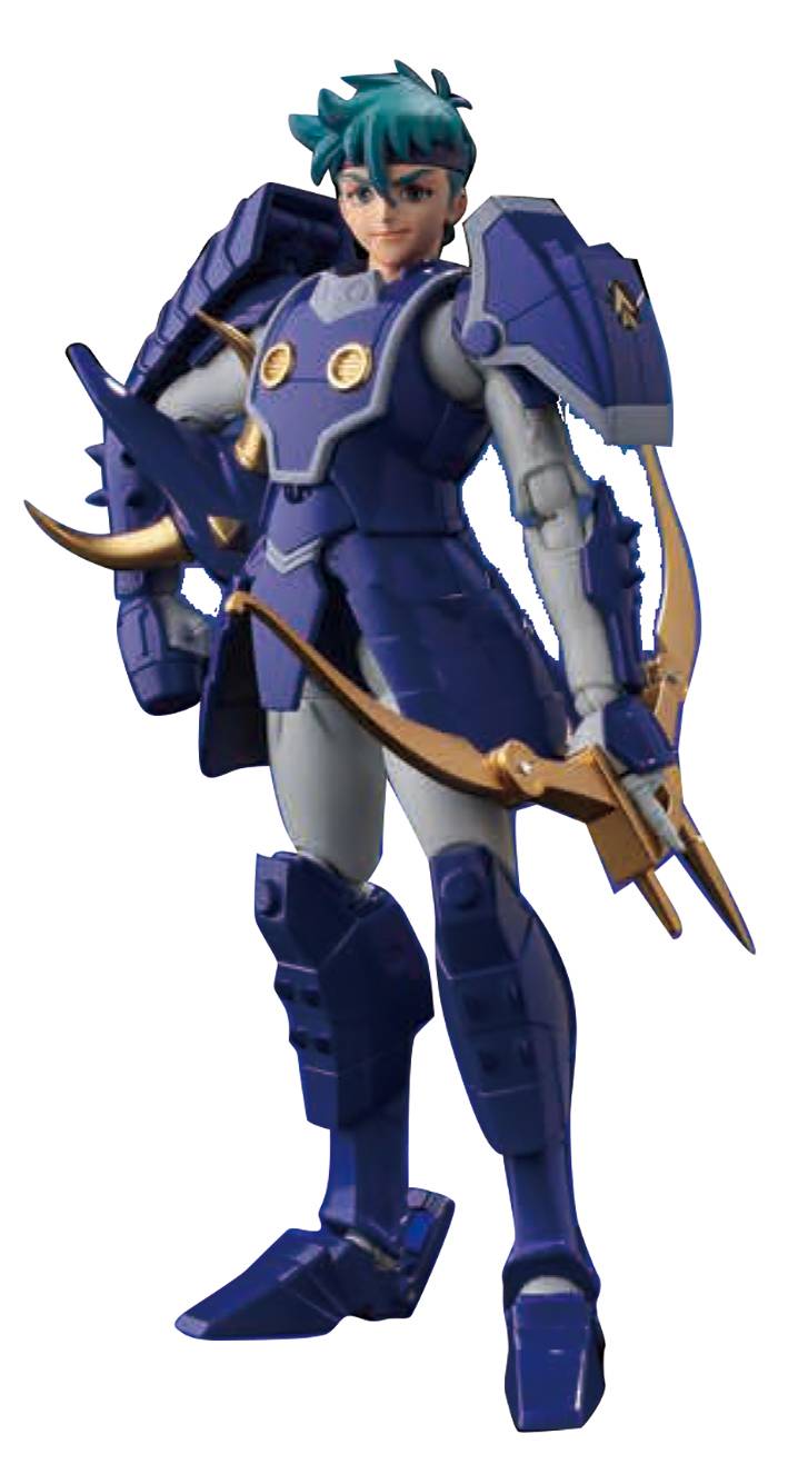 The armor is designed to be displayed in the Armor display form seen in the anime series by using the special frame base included with the product. His bow, by using built in mechanisms, can be held on his back.
